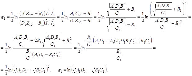 Выясним физический смысл величины g 1. Для этого возьмем симметричный четырехполюсник. Для него выполняется равенство Т.о. β называется коэффициентом фазы. Он характеризует изменение фазы напряжение или тока. Теперь рассмотрим несимметричный четырехполюсник. Из системы (9.7) находим