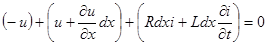 Рассмотрим двухпроводную однородную линию (рис. 7.1). Здесь L, R – индуктивность и сопротивление пары проводов на единицу длины линии. C, G – емкость и проводимость утечки между проводами на единицу длины линии. Координата x отсчитывается от начала линии. Согласно принципу непрерывности тока запишем уравнение для поверхности S: