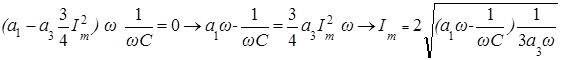 Учтем только основную гармонику в выражении для напряжения на индуктивности: Напряжение на конденсаторе равно Далее найдем выражение для напряжения на зажимах цепи (по условию резонанса оно равно нулю)
