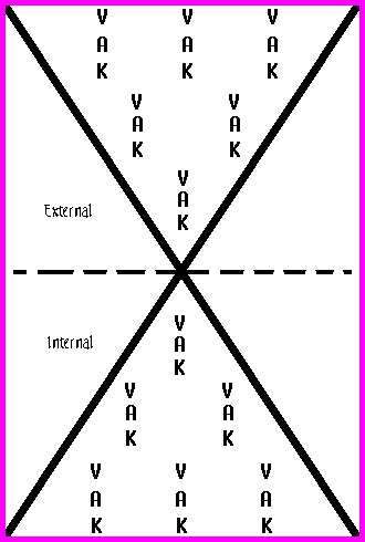 Во многих процедурах самогипноза участники входят в транс, а затем дают себе внушения. Мне кажется, что если бы я сознательно понимал, что нужно сделать в случаях, когда я использую самогипноз, первым делом отпала бы нужда в гипнозе. В самом деле, часто бывает, что именно рассудок не дает нам измениться. Это сознание говорит "Я не могу...", или "Я не знаю, как...", или "Мне ума не хватит..." Кое-кто удивится этому, но примите во внимание, что раз мы слышим "разговор с собой", он не является подсознательным. Процесс, описанный ниже, отвлекает сознание, так что оно перестает вмешиваться, а ваше подсознание тем временем делает всю работу. Техника самогипноза 4. Устройтесь поудобнее — Найдите позу, которую вы легко сможете сохранять все время, пока будете проделывать этот процесс. Можно сесть или лечь, хотя лучше сидеть, это удержит вас от засыпания. Выпрямитесь, глядите перед собой, дышите медленно и легко. Позвольте себе расслабиться. 5. Время -Определите, сколько времени вы собираетесь потратить, и объявите его себе, например, "Я собираюсь загипнотизировать себя на 20 минут..." (или сколько хотите). Вас восхитит точность, с которой ваши "внутренние часы" следят для вас за временем. 6. Цель -Теперь объявите себе цель погружения в самогипноз. В этом процессе мы позволяем подсознанию работать скорее над некоторой целью, чем над последовательностью внушений, следовательно, формулировка цели должна учитывать этот факт. Вот что говорю я: "...с целью позволить моему подсознанию произвести соответствующие настройки, чтобы помочь мне ____________". Вставьте вместо прочерка то, чего вы хотите достичь, например, "развить более доверительные отношения с людьми". Точные слова совершенно не важны, важен факт, что вы передаете процесс своему подсознанию. 7. Состояние по выходу — Наконец, объявите себе, в каком состоянии вы хотите быть, когда завершите этот процесс. Обычно, в гипнозе мы слышим о том, что "возвращаться" нужно, чувствуя себя "проснувшимся, собранным и освеженным", но в реальном мире это может быть не то, что вам нужно. Например, если вы собираетесь заняться самогипнозом на сон грядущий, вы можете предпочесть вернуться "расслабленным и готовым ко сну". Если вы занимаетесь этим перед каким-то делом, вы можете захотеть выйти из транса "мотивированным и энергичным". Просто скажите себе: "И когда я закончу, я буду чувствовать себя ___________". 8. Процесс – На диаграмме, глядя перед собой, отметьте три вещи (по одной), которые вы видите. Делайте это медленно, останавливаясь на момент на каждой из них.
