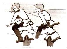 Важно отметить тот факт, что девочки в эти игры не играли, это были чисто мужские игры. Девочки просто не решались играть в мальчишеские игры, это могло вызвать пересуды типа: «Вместе с парнями». Также не одобрялось, если один или два мальчика играли с группой девочек: «с девчонками, бабник». Упреки такого рода становились традиционными для ребят, достигших 10-летнего возраста, времени, когда мальчик вставал на путь мужчины-воина. КОНЬ Современное название этой игры «Слон». Играющие делятся на две команды по 6-8 человек. По жребию определяется, какой команде первой вставать «конем» («слоном»).