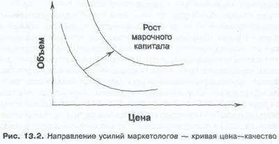 Степень достигнутого сдвига служит показателем марочного капитала. В большинстве случаев кривая экономистов достоверно описывает ситуацию с товарами широкого потребления. Однако она хороша в том случае, когда все продукты взаимозаменяемы, а все потребители обладают полной информацией. Данные посылки – абсолютная антитеза маркетингу, основная задача которого дифференцировать марки и, следовательно, продукты, а также доносить до потребителя сведения только о положительных качествах каждой марки. Еще в 1930-х гг. профессор Джоан Робинсон указала, что каждая марка является минимонополией, если она обладает кругом собственных, верных ей потребителей. Таким образом, если марка достаточно сильна, то кривая спроса на нее будет выглядеть, как показано на рис. 13.3. изначально, по мере того как цена соответствует качеству продукта, спрос находится на высоком уровне, а затем постепенно снижается. В какой-то момент потребитель понимает, что производитель играет не по правилам, доверие к марке падает, объемы сбыта стремительно уменьшаются. Хотя известно множество достоверных данных, подтверждающих эту точку зрения, необходимы дальнейшие исследования.