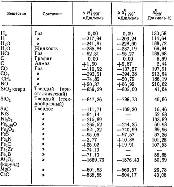 Таблица 1.1. Стандартные термодинамические величины некоторых веществ и энергии связи