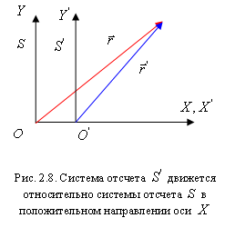 Найдем формулы преобразования координат при переходе от одной ИСО к другой. Допустим, что система отсчета S инерциальна. Рассмотрим вторую систему отсчета S', движущуюся относительно первой поступательно с постоянной скоростью Пусть в момент времени