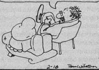 Начальница официанту: «Десять салатов!» 1985 Воспроизводится с разрешения Артемаса Коула. Впервые напечатан в журнале «Нью вуман». Не так давно в газете «Балтимор сан» появилась очень трогательная и интересная статья. Перепечатанная из журнала «Ридерс дайджест», она была озаглавлена «Мальчик с необычным зрением». В ней рассказывалось о мальчике, которого звали Кэлвин Стэнли. На первый взгляд Кэлвин обычный мальчик, он катается на велосипеде, играет в бейсбол, ходит в школу и делает практически все, что положено делать всякому одиннадцатилетнему ребенку. Только он... ничего не видит. Как же научился мальчик делать все это, когда многие другие в такой ситуации отказываются от полноценной жизни? Когда я прочел эту статью, мне стало ясно, что мать Кэлвина — профессионал в области контек-стуализации. Она сумела превратить жизненный опыт Кэлвина в преимущества в его сознании. Мать внушила ему, что все на свете именно такое, каким он это представляет. Вот несколько примеров их общения. Мать Кэлвина вспоминает тот день, когда сын впервые спросил ее, почему он слепой. «Я объяснила ему, что он таким родился, и в этом нет ничьей вины». Тогда он спросил: «Почему именно я?» Я ответила: «Я не знаю почему, Кэлвин. Возможно, у Бога какие-то особые планы насчет тебя». Затем она усадила сына рядом с собой и сказала ему: «Дело в том, что ты видишь, Кэлвин. Только ты видишь руками, а не глазами, как другие. И запомни, нет ничего на свете, чего бы ты не смог сделать». Однажды Кэлвин очень огорчился, потому что вдруг понял, что никогда не увидит лица матери. «Однако миссис Стэнли знала, что сказать своему единственному ребенку, — пишет автор статьи. — Она сказала: "Кэлвин, ты можешь увидеть мое лицо. Ты можешь увидеть его, прикасаясь своими пальцами и слушая мой голос, при этом ты сможешь рассказать обо мне гораздо больше, чем те люди, которые видят меня глазами". В статье далее говорилось о том, что Кэлвин передвигается в мире зрячих с непоколебимой уверенностью ребенка, который постоянно чувствует материнскую поддержку. Кэлвин хочет стать программистом-компьютерщиком и заняться разработкой компьютерных программ для слепых. Мир полон таких ребят. И он очень нуждается в людях, которые могли бы переконтекстуализировать ситуации так же эффективно, как миссис Стэнли. Мне повезло недавно встретить другого такого мастера. Его зовут Джерри Коффей. Это необыкновенный человек, который сохранил рассудок и здоровье, проведя семь лет в одиночной камере в лагере для военнопленных во Вьетнаме. Человек, который впервые слышит его рассказ, не может не содрогнуться. Однако ничего в этом мире не хорошо и не плохо само по себе, а только в нашем восприятии. Джерри решил воспринять случившееся с ним как испытание его природной стойкости и силы, как уникальную возможность лучше познать самого себя. Как возможность стать ближе к Богу. Как нечто такое, что однажды заставит его гордиться тем, как он прожил эти годы. В этом контексте он стал рассматривать все, что с ним происходило в лагере, как часть опыта по развитию его личности. Он вышел из лагеря другим человеком. Он не променял бы этот свой опыт и на миллион долларов, так он утверждает. Вспомните о самой большой ошибке, которую вы совершили в прошлом году. На вас сразу же может найти грусть при одном воспоминании о ней. Но давайте рассм