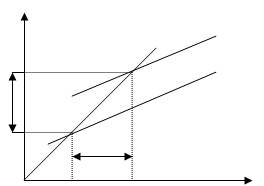 Покажем суть этого мультипликационного эффекта. (рис.6) Предположим, что при данном уровне потребления, инвестиций и государственных расходов равновесное состояние макроэкономики достигается в точке Е при объеме ВНП, равном 60 млрд. р. Совокупные расходы, млрд.р.