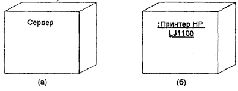 Возможность включения людей (персонала) в понятие узла позволяет создавать средствами языка UML модели самых различных систем, включая бизнес‑процессы и технические комплексы. Действительно, реализация бизнес‑логики предприятия требует рассматривать в качестве узлов системы организационные подразделения, состоящие из персонала. Автоматизация управления техническими комплексами также требует рассмотрения в качестве самостоятельного элемента человека‑оператора, способного принимать решения в нештатных ситуациях и нести ответственность за возможные последствия этих решений. Графически на диаграмме развертывания узел изображается в форме трехмерного куба (строго говоря, псевдотрехмерного прямоугольного параллелепипеда). Узел имеет собственное имя, которое указывается внутри этого графического символа. Сами узлы могут представляться как в качестве типов (рис. 11.1, а), так и в качестве экземпляров (рис. 11.1, б).