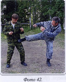 4. Боковой удар по голени. Он наносится внутренней частью стопы. (фото 40)
