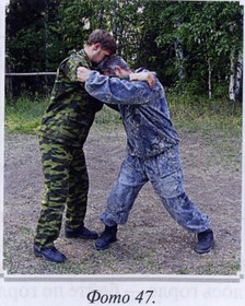 Примечание: Удары головой, как и коленом, наносятся в ближнем бою. Надо помнить, что удар головой в три раза сильнее удара кулаком. 1. Удар головой вперёд. (фото 47)