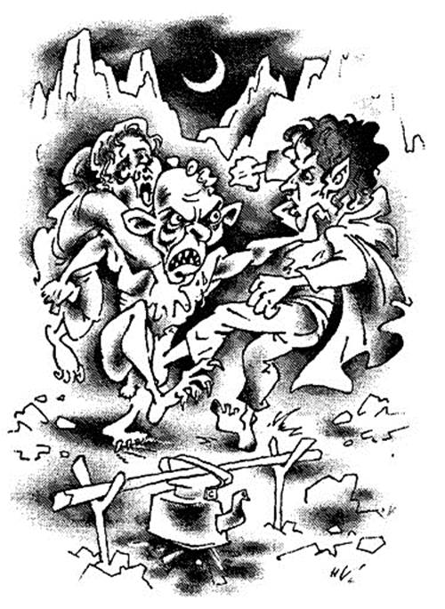 Вы когда-нибудь бывали в славном городишке Санкт-Петербурге? Нет, не в том, что прославил когда-то на весь мир некто Марк Твен, поселивший в захудалом американском поселке городского типа своего Тома Сойера. Речь о всамделишном Санкт-Петербурге, знаменитом своими белыми ночами и разводными мостами. Почему разводными? Нет-нет, вовсе не потому, что на мосту вас могут запросто развести на бабки местные гопники! В славном городе Санкт-Петербурге попросту нет гопников; случись вам встретиться с местной шпаной – вам культурно начистят лицо, возможно, в процессе даже цитируя Шекспира в подлиннике: «Be or not to be?» – что в переводе на русский язык звучит как «Бить или не бить?» – и в полной мере отображает все многовековые метания русской интеллигенции, чей несгибаемый дух все еще хранит славный город Санкт-Петербург, ибо с вывозом мусора дела здесь обстоят хуже некуда. Так вот, если вам не удалось пока еще побывать в культурной столице государства российского, то для того, чтобы посетить этот город, обязательно выберите конец мая – начало июня, чтобы обязательно попасть на сезон белых ночей. Если вам это все же удастся – не премините совершить прогулку по ночному Санкт-Петербургу» только обязательно выберите для этого противоположную относительно вашей гостиницы сторону города. И вот, когда в два часа ночи, после встречи с интеллигентной шпаной вы без копейки денег в кармане окажетесь перед мостами, вскинувшими ввысь свои многотонные пролеты, – только тогда вы в полной мере сможете насладиться противоречивостью красот Санкт-Петербурга и понять загадочную природу врожденной мрачности жителей города, которым эти самые красоты доставляют сплошные неприятности. Возможно, тогда вы сможете понять, наконец, этих сумасшедших, которые несутся по набережной, распихивая туристов, толкущихся возле мостов со своей фото – и видеоаппаратурой, и упрашивают людей в униформе, перегораживающих проезжую часть заборчиками, пропустить их на вожделенный мост: – Какие в ж… белые ночи? Мне ДОМОЙ!!!! Меня жена убьет!!! * * * Майор милиции, заслуженный пожарный Поволжья и почетный народный дружинник, известный в определенных кругах под кличкой Пендальф, в молодости подрабатывал в ремонтно-эксплуатационном управлении Мостотреста г. Ленинграда и не одну ночь провел подле мостов, выставляя упомянутые уже заборчики, был весьма и весьма подкован в разговорах с теми, кому «ну очень надо на ту сторону». Поэтому именно он вызвался на роль комсомольца-добровольца, когда возникла необходимость прикрывать отход спецотряда, вытесненного к реке невесть откуда свалившимся на них призраком коммунизма, который по всем раскладам должен был находиться в турне по Европе. Призрак, подозрительно напоминавший Диабло-второго, не слишком был склонен к церемониям – поливая округу из огнемета, он шустро нагонял партизанский отряд, состоявший из четверки карапузов во главе с Федором Сумкиным и ребят посерьезнее и построже – Агронома с Баралгином, да Лагаваса с гномом Гиви. Краем глаза следя за тем, как вся эта братия перебирается на противоположный берег, Пендальф попытался было выиграть время, для начала решив взять монстра на понт. Сдвинув брови и размахивая наганом, он угрожающе двинулся навстречу Диабле: – Всем стоять! Трамвай – прижаться вправо! Монстр, не отличавшийся высо