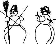 Этнографы говорят, что на этом наскальном рисунке первобытных охотников изображена пляска в честь богини плодородия. А я думаю, что это парни слепили двух снежных баб и резвятся. Их большие размеры выражают их важность в данный момент.