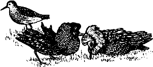 Параллелизм. Самцы турухтанов, принадлежащие к другому отряду птиц, тоже проводят турниры на коллективных токах, тоже сильно отличаются от самок (но только в сезон размножения, потому что после его окончания сбрасывают пышный перьевой наряд) и тоже не заботятся о самке и потомстве. Сходство с тетеревами во многом обеспечено общими для птиц генетическими программами, а сходство с манящими крабами и жуками‑оленями конвергентно. Обратите внимание, что у совсем не родственных классов птиц и ракообразных или у двух неблизких классов членистоногих (ракообразных и насекомых) независимо, а следовательно, конвергентно возникла такая тонкая деталь поведения, как изображение самкой отстраненности от происходящего поединка.