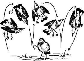 Почти все взрослые животные обычно избегают тесных контактов с другими взрослыми животными, сохраняют некоторую дистанцию, нарушение которой неприятно, вызывает страх и приступ агрессивности. Парное токование постепенно сокращает дистанцию, позволяя тесный контакт. Очень разнообразное и изящное токовое поведение, как установили этологи, имеет в своей основе столкновение двух мотиваций – стремления к партнеру и боязни натолкнуться на отпор. Токуя, самец изображает то приближение, то удаление, то демонстрирует все свои украшения, то прячет их, принимает позу то угрозы, то подчинения. Самка моментально узнает эти позы и отвечает на них своими. Эта сверка инстинктивных программ и есть поведение по принципу «ключ – замок».