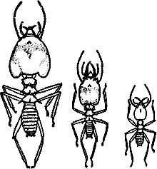 Специализация к войне может сделать жизнь неимоверно скучной. Солдаты пробковых муравьев всю жизнь служат затычками с бронированным лбом на входах в гнездо.