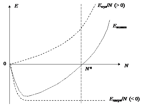 Из графика ясно видно, что при небольших размерах ядра (N < N*) суммарная энергия ядра отрицательна и в нем преобладают силы притяжения. Поэтому такие ядра устойчивы. Напротив, большие ядра (N > N*) характеризуются положительной энергией и в них превалируют силы отталкивания. Такие ядра нестабильны и подвергаются самопроизвольному разрушению на более мелкие агрегаты нуклонов. Эта нестабильность обычно обозначается термином "радиоактивность". (Существует множество оценок критического числа N*, которые лежат в интервале от 130 до 150.) С химической точки зрения важное значение имеет то обстоятельство, что разнообразие долгоживущих ядер, а, следовательно, и химических элементов, ограничено критической величиной атомного номера (N ~ N*). Учет тонких эффектов, связанных с внутриядерными магнитными силами, влияние электронных оболочек и т.д. приводит к тому, что изображенные на графике зависимости, при сохранении их общего характера, становятся более сложными, "извилистыми".