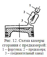 Объем предкамеры (рис. 12) составляет 25–35 % общего объема сжатия Vс. Площадь проходного сечения соединительных каналов равна 0,3–0,8 % площади поршня.