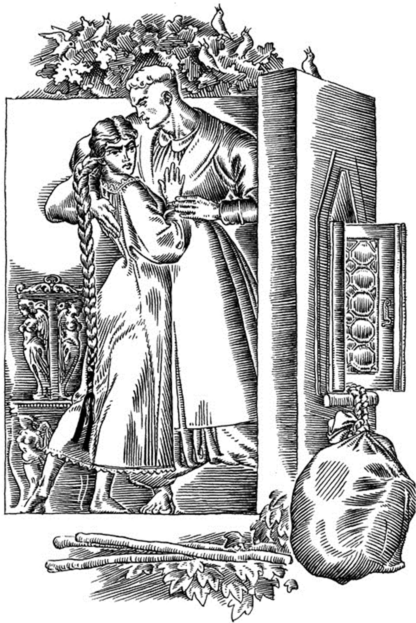 Тиша бриніла в гóроді. Тільки часом перегукувались вартові. Але вже не чути було ні соловейків, ні собак, ні хоркання кобил, ні гуркоту війни, ані пісень клечальних, ані парубоцьких зітхань, що від них такими ночами аж вітер здіймається над Мирославом. Стоячи біля вікна, вони вдвох, Ярина й Михайлик, знову ненароком схопившись за руки, дослухалися до обережних кроків за вікном. Михайлик і не глянув навіть на осяяний місяцем Рембрандтів образок на стіні, що в нього, власне, й закохався кілька ночей тому цей селюк з першого погляду, бо ж оригінал ковалика приваблював тепер, ясна річ, властеливіше за портрет… Парубок чув її дихання, чув дотик руки, бачив мерехтіння очей, а схаменувся лише тоді, коли зовсім близько зашерхотіли чиїсь кроки по ріні, під самим архієрейським будинком. — На нього, бач, і собаки не брешуть, — посміхнулась бісова панночка. — Отже… — Хто ж це такий закоханий? — пирснувши, спитав Михайлик… — Шукач скарбів… — Таких, як ти? — Дорожчих! — прошепотіла Ярина і стиснула ковалеві руку. Нишком визирнувши з вікна, вони побачили дві постаті, що крадькома посувались попід стіною владичиного дому. — Хто другий? — спитав Михайлик. — Мар’яна. — Циганочка? — Ти вже її знаєш? Придивившись, Михайлик справді-таки впізнав тоненьку постать чарівної ворожбиточки. Вона підвела пана Оврама під вікно й стиха сказала: — Тут. І підштовхнула Роздобудька до стіни: — Лізьте, паночку. — Куди ж? — У вікно, паночку. — А драбина? — Нема, паночку. — Як же я злізу? — і пан Роздобудько, пещений чепурун, спинився біля мурованої стіни ні в сих ні в тих: так близько була мета його прибуття до Мирослава, лист полковника Кіндратенка, але добутись на другий поверх панок не вмів. З того десятка жовтожупанних харцизів, що в руїнах монастиря сьогодні полягли від руки Філіппа та Михайлика, лишилося в живих тільки троє поранених, але ж пан Роздобудько про катастрофу ще не знав і собі на допомогу чекав їх усіх сюди — з хвилини на хвилину, і йому було зручніше, щоб вони приспіли вже потому, як папери полковника Кіндратенка опиняться в його кишені, бо, зрештою ж, цікавили шукайла, звісна річ, передусім скарби, а не якась там сухорлявенька панночка, що її забагли так притьмом і в Римі, і в Варшаві, і в домі гетьмана Гордія Пихатого. Шукайло прагнув добутись до панни Кармели мерщій, бо мусив квапитись, поки йому на поміч не приспіли ті харцизяки, що ховалися в руїнах кляштора. Та й сторожа могла тут нагибати його в першу-ліпшу хвилину. Та й собаки десь поблизу забрехали. Та й невиразні чиїсь голоси вже озвались поблизу архієрейського дому. Зволікати було ніколи, і Мар’яна смикнула за товстенний мотуз, який звисав з прочиненого вікна до самої землі. Це було, мабуть, умовне гасло, і чиясь рука мерщій викинула з вікна величезний мішок, який, упавши до ніг Роздобудькові, так його налякав, що пан Оврам замалим не скрикнув, захитався, і Мар’яна-циганочка, щоб його підтримати, схопила за лікоть, міцно стиснула маленькою, але чіпкою ручкою і наказала: — Лізьте в лантух. — Навіжена! — Вас нагору витягнуть мішком. — Я піду собі, — сказав Оврам і на крок одступив од мішка, маючи надію зразу ж таки зустрітися з помагачами-однокрилівцями, які ось-ось уже повинні були надійти з монастиря. Аж тут завалували собаки, рвучи когось, знов загомоніли стиха якісь люди, і все це було так близько, коло 