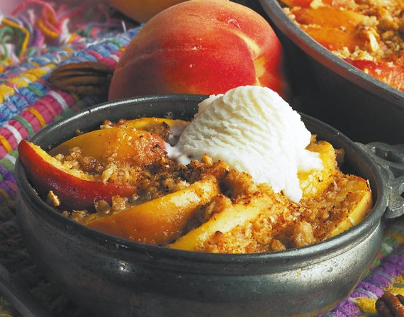 Десерт из мороженого с персиками