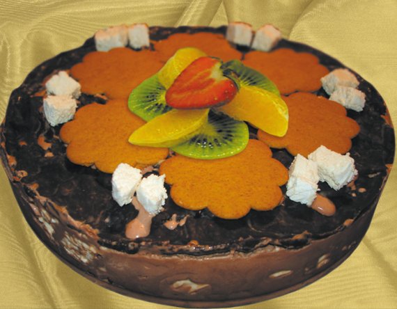 Торт‑мороженое с фруктами и печеньем