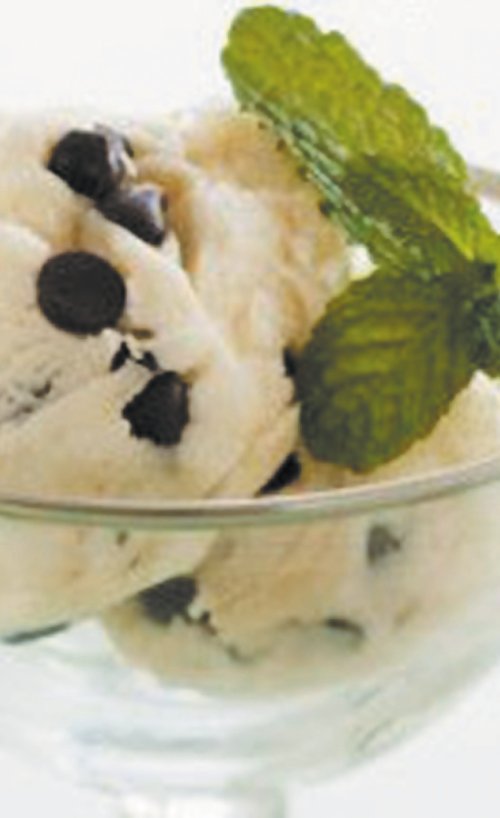 Мороженое из йогурта с кусочками персика