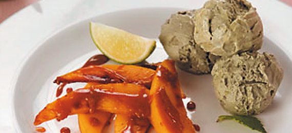 Мороженое с дыней и миндальным соусом