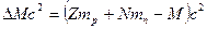 где mp - масса протона, mn - масса нейтрона. M - масса ядра. Дефект массы возникает из-за того, что в ядерных превращениях не выполняется закон сохранения массы. В среднем Энергия связи ядра - это энергия которую необходимо затратить, чтобы разделить ядро на отдельные нуклоны. Для устойчивых систем энергия связи характеризует прочность системы: чем больше энергия связи, тем прочнее система. Для ядер энергия связи определяется сильным взаимодействием нуклонов в ядре. Энергия связи вычисляется через дефект массы ядра по формуле