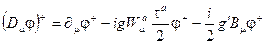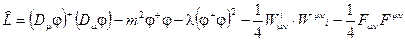 где Минимальное число скалярных полей, приводящих к возникновению масс трех промежуточных бозонов, равно четырем. В качестве таковых выбирается комплексный дублет, т.е. вектор спинорного представления группы Исходный лагранжиан калибровочных и скалярных полей инвариантный относительно калибровочных преобразований с группой