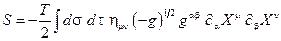 Подобно тому как точка описывает в пространстве- времени мировую линию, струна при своем движении заметает мировую поверхность. Эта двумерная поверхность может быть вложена в пространство любой размерности. Обычно вкладывают в 10-мерное «фоновое» пространство. Так как струна является суперсимметричной, пространство дополняется грассмановыми образующими. Число грасмановых образующих зависит от типа суперсимметрии. Мировая поверхность параметризуется двумя параметрами Действие для струны является обобщением действия для точечной частицы.см. табл.2.7. Для частицы действие S =