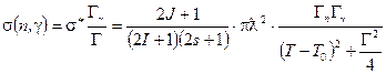 -формула Брейта-Вигнера для резонансного сечения неупругого рассеяния нейтрона.