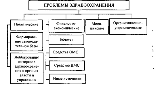 Медииинские проблемы: Смертность (Сердечно-сосудистые заболевания, новообразования, травмы). Смертность в трудоспособных возрастах (Травмы, ССЗ, новообразования). Рост инфекционных заболеваний и смертности от них. Заболеваемость новорожденных (рост за 10 лет в 3,7 раза). Здоровье школьников (40% от числа осмотренных — с хроническими заболеваниями, 50% — с морфо-функциональными отклонениями (предболезнь). 10%— подростки, которых можно назвать здоровыми). • Школьницы-подростки (частота хронических заболеваний у школьниц в 60-е годы — 40%, в 80-е гг. — у 44%, в 90-е гг. у 75%). • Рост средних показателей заболеваемости туберкулезом. • Рост венерических заболеваний. • Рост ВИЧ-инфекции. • Наркомания (каждый год рост наркомании на 50%, а среди подростков 100%) • Алкоголизм. Организационно-управленческие проблемы Определение объемов и способов финансирования бесплатной медицинской помощи. Восстановление разумной вертикали управления системой здравоохранения. Формирование государственного заказа на предоставление гражданам определенных видов и объемов медицинской помощи. Форматирование нормативно-правовой базы здравоохранения. (Законы: «О национальном здравоохранении»; «О государственной системе здравоохранения»; «О частной системе здравоохранения»; «О внесении изменений и дополнений в Закон РФ «О медицинском страховании граждан в РФ»). Перемещение акцентов в оказании медицинской помощи со стационаров на амбулаторно-поликлиническое звено. Разграничение полномочий между Федеральным центром и Субъектами Феде рации Меры по поддержанию Федеральных медицинских центров. Меры государственного регулирования лекарственного обеспечения населения: - введение государственного регулирования цен на жизненно необходимые лекарственные средства; - централизованные закупки для медицинских учреждений и льготных категорий согласно перечню; - долевое финансирование бюджетами различных уровней и средствами ОМС; - персонификация учета потребления лекарственных средств; Выравнивание расходов территорий при помощи субвенций на основе совместных договоров между Минздравом и властями субъектов Федераций на следующих условиях: _ повышение доли расходов региональных бюджетов на здравоохранение; - реструктуризация видов помощи. Date: 2015-09-17; view: 477; Нарушение авторских прав |