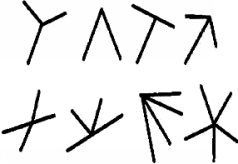 Именно так происходит опознавание человеком того или иного предмета. При демонстрации только небольшой части какой‑либо вещи ее распознавания может и не произойти. Впрочем, человеческое тело как наиболее значимое для людей изображение в этом случае является исключением. Так что подобные особенности восприятия зрителем композиции имеют под собой серьезную основу. Когда объекты перекрывают друг друга, их контуры пересекаются. В точках пересечения может оказаться несколько линий, при этом установлено, что их разновидностей может быть всего восемь: вилка, Y‑ пересечение, Т‑пересечение, стрелка, Х‑пересечение, К‑пересечение, пик, множественное пересечение. При помощи этих узлов зритель подсознательно превращает плоские изображения в объемные.