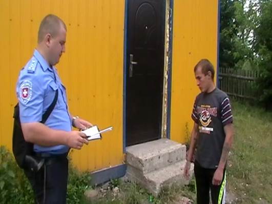 Ілюстрація №2. Підозрюваний М’ялик Віктор Валентинович слідує в напрямку до тильної сторони приміщення магазину «Крамниця» в с. Зелене Володимирецького району. Заступник начальника СВ Долюк О.С.