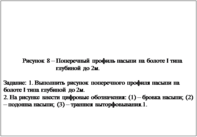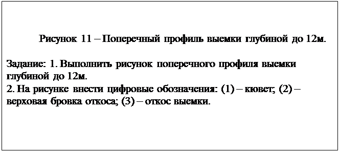 Задание: 1. На основе рисунка 10.1 (стр. 286) Учебника выполнить рисунки поперечных профилей полунасыпи, полувыемки и полунасыпи-полувыемки для однопутного участка, с указанием размеров ширины основной площадки и водоотводной канавы.