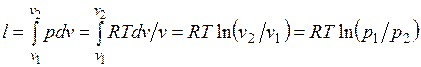 т. е. давление и объем обратно пропорциональны друг другу, так что при изотермическом сжатии давление газа возрастает, а при расширении — падает (закон Бойля — Мариотта, 1662 г.). Графиком изотермического процесса в р,v –координатах является равнобокая гипербола, для которой координатные оси служат асимптотами. Работа процесса:
