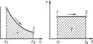 Рисунок 5.3 - Изображение изотермического процесса в р, v- и T, s -координатах.