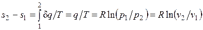 При изотермическом сжатии от газа отводится теплота в количестве, равном затраченной на сжатие работе. Изменение энтропии в изотермическом процессе выражается формулой