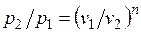 подбирая соответствующее значение п. Процесс, описываемый таким уравнением, называется политропным. Показатель политропы n может принимать любое численное значение в пределах от Из уравнения Клапейрона нетрудно получить выражения, устанавливающие связь между р, v и Т в любых двух точках на политропе, аналогично тому, как это было сделано для адиабаты: