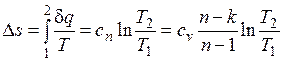представляет собой теплоемкость идеального газа в политропном процессе. При постоянных cv, k и п теплоемкость с n = const, поэтому политропный процесс иногда определяют как процесс с постоянной теплоемкостью. Изменение энтропии