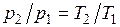 При изохорном процессе выполняется условие dv = 0 или v = const. Из уравнения состояния идеального газа следует, что p/T=R/v= const, т. е. давление газа прямо пропорционально его абсолютной температуре: