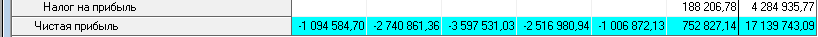 Рис. 7 «Прибыли-убытки (руб.)» В отчёте Кэш- фло отражается структура потребности проекта в финансировании, показан результат операционной деятельности, присутствует план капитальных затрат. На базе информации таблицы движения денежных средств бизнес-плана производится анализ запаса прочности проекта относительно изменения различных параметров.