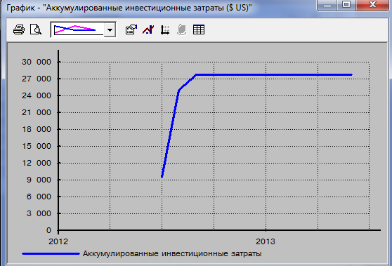 Рис.14 «График аккумулированные инвестиционные затраты» Модуль «Анализ проекта» предназначен для разностороннего анализа финансовой эффективности проекта.