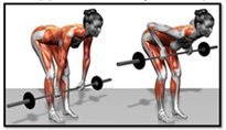 2. Тяга штанги в наклоне (3 подхода: по 8-12 повторений)