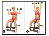 3. Жим гантелей сидя на плечи (3 подхода: по 8-12 повторений)