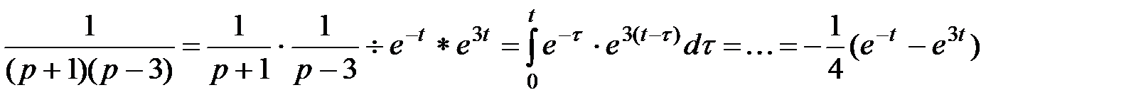 1. Найти изображение a) Решение: а) используя таблицу соответствия (оригинал-изображение) и теорему линейности, имеем: б) по таблице соответствия в) по таблице соответствия 2. Найти свёртку функций