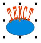 После ввода текст можно перемещать, как графический объект, производить его форматирование, вращать и размещать текст вдоль объектов. Для размещения текста вдоль объекта следует: 1) ввести текст и создать объект, вдоль которого будет располагаться текст (в данном примере – эллипс)