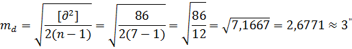 Получив значение m по этой формуле, находят среднюю квадратическую погрешность среднего арифметического