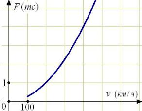 1. Когда самолет находится в горизонтальном полете, подъемная сила, действующая на крылья, зависит только от скорости. На рисунке изображена эта зависимость для некоторого самолета. На оси абсцисс откладывается скорость (в километрах в час), на оси ординат – сила (в тоннах силы). Определите по рисунку, чему равна подъемная сила (в тоннах силы) при скорости 200 км/ч? Решение. По оси Ох находим 200 км/ч – что соответствует 2 клеткам, поднимаемся до пересечения с графиком и смотрим соответствующее значение на оси Оу. Ответ: 1.