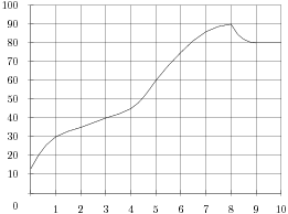 8. На графике показан процесс разогрева двигателя легкового автомобиля. На оси абсцисс откладывается время в минутах, прошедшее от запуска двигателя, на оси ординат — температура двигателя в градусах Цельсия. Определите по графику, до скольки градусов Цельсия двигатель нагрелся за первые 5 минут.