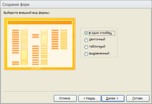 4) Выбрал вид формы и нажал кнопку «Далее» (рисунок 17).