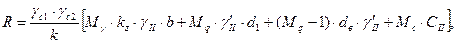 2) Вычисляется расчетное сопротивление грунта основания по формуле: